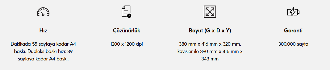 ECOSYS PA5500x, sahip olduğu 2.600 sayfaya kadar esnek kağıt besleme seçenekleri, modern güvenlik özellikleri ve uzun ömürlü bileşenlerle çalışma gruplarının genel performansını artıracak olağanüstü verimlilik ve güvenilirlik sunar. Dakikada 55 sayfaya varan baskı hızı ve hızlı ilk baskı süresiyle ihtiyacınız olan her an hazırdır.